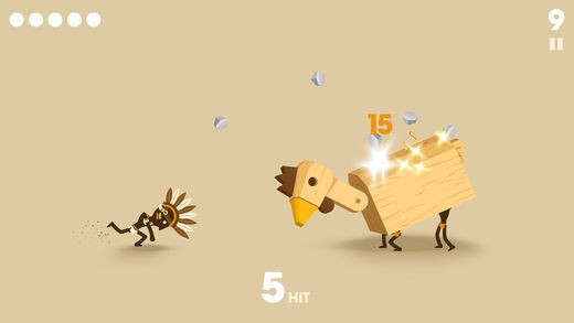 ハンド練習としての木で出来ているにわとりを使って実際の動物を前にしての戦い方を覚えます。といつつも木製のニワトリ君実は強い。頭部とか急所にあたるとポイント高いです。首を上下にふるのでいがいと当たりにくい。次に出てくるのが「マンモス」です、その牙がどんな武器でも跳ね返します。その次ぎは「サイ」です。サイも強い角を持っているので要注意!ヒット&アウェイの戦い方がポイントです。接近戦はすぐにやられてしまうので要注意!その後はBIGバードというものすごく大きい鳥が相手です。くちばしが武器。次ぎから次ぎへと現れる強力な敵をやっつけていくゲームです。てごわいですね。このゲームの敵は。逆にやっつけがいもある!