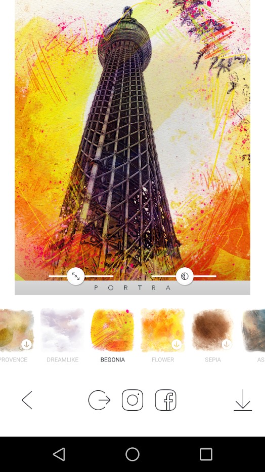 加工後はインスタグラムやフェイスブックにそのまま投稿が可能です。操作が簡単なので気軽に絵画風加工を楽しめます。