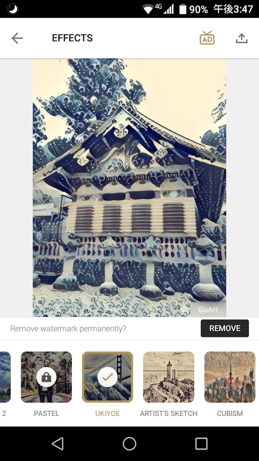 ピカソやゴッホのようなタッチはもちろんのこと、浮世絵や水墨画など和風のものも用意されているのが特徴です。同じ写真に複数のフィルターを使えば、和洋折衷のような今までにない新しいアートが生まれるかもしれません。
