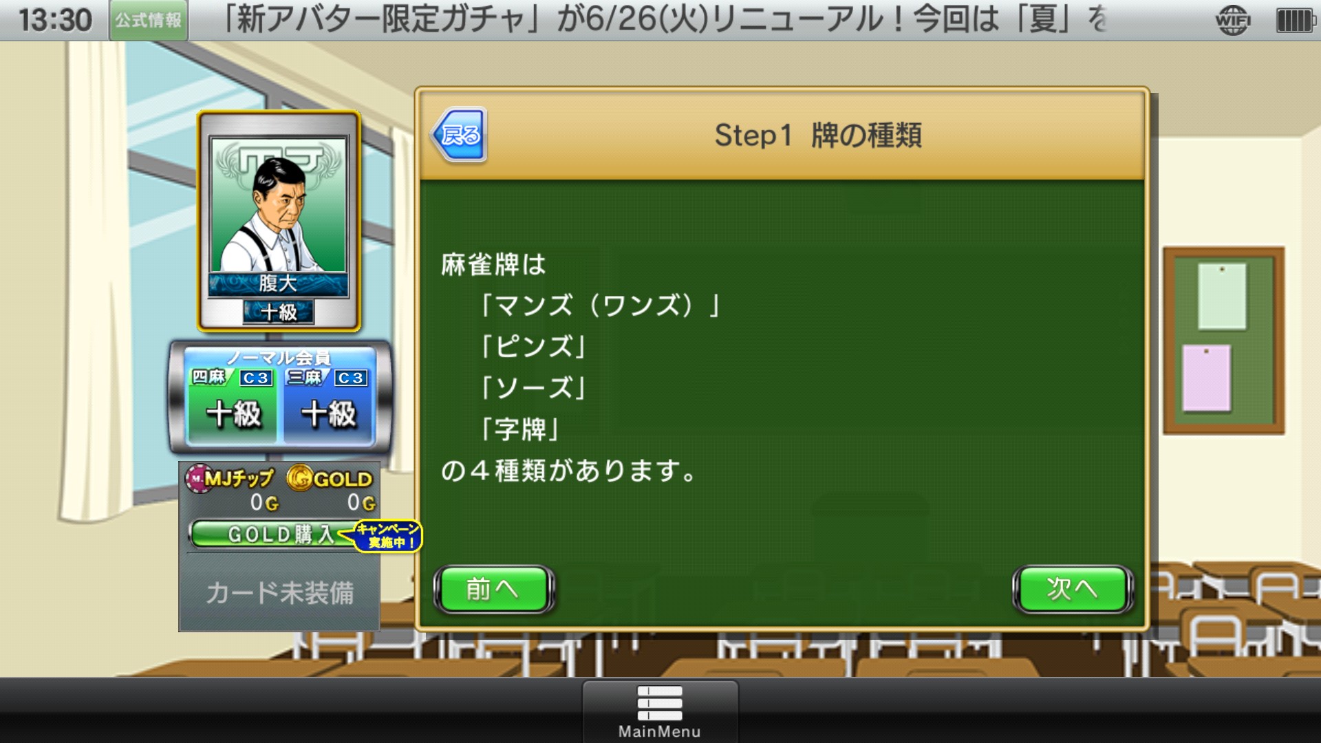 このアプリは毎日5分ずつプレイすれば、麻雀のルールを覚えられるようになっています。