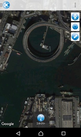 画面上の衛星写真を見ながら、モーター起動・回転などの各アイコンをタップしてドローンを遠隔操縦できます。