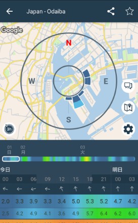このアプリでは、登録した着地ポイントの気象情報を事前に確かめることができます。