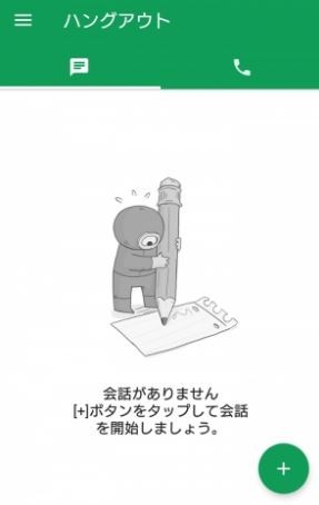 メインメニューは、「ビデオハングアウト」「通話」「メッセージ」です。