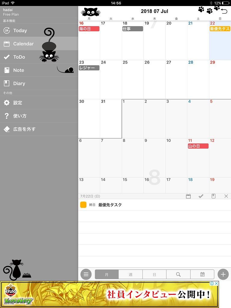 日本最大級の手帳アプリで、カレンダー、日記、ToDo、ノートなどプライベートだけでなくビジネスにも役立つ機能が盛りだくさんです。これだけ多機能にも関わらず、初心者に扱いやすい操作性で多くの人が利用しています。カレンダーでは月・週・日別の表示、タスクのラベルは色の変更など、見やすいような工夫がされています。有料プランではスタンプを取得して貼り付けられるため、さらにカレンダーが華やかになるでしょう。あなたの好きなようにカレンダーをカスタマイズしてみてください。