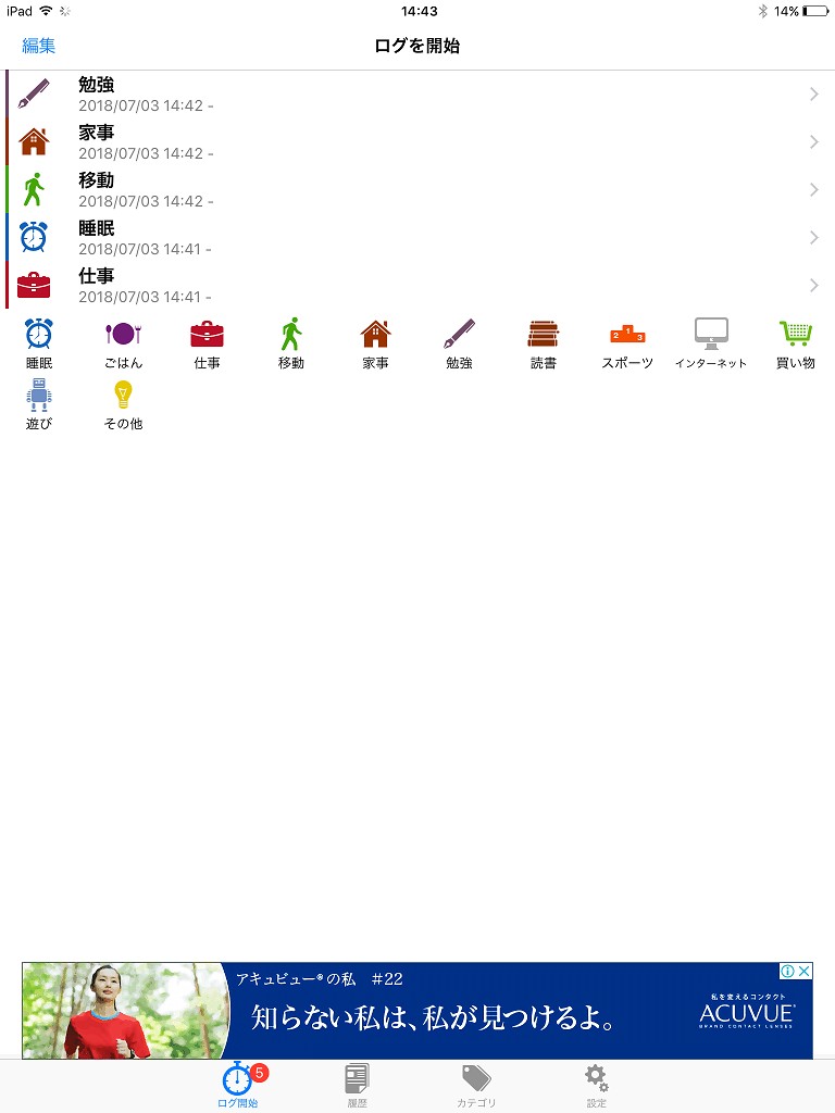 あなたの毎日の行動を記録してくれるアプリがiライフログです。使い方も簡単で、ログ開始のタブで当てはまるタスクアイコンをタップするだけで記録を開始してくれます。終了するときは開始された該当のアイコンをアップして、終了を選択します。現在の時刻が下に表示されるので、正しければ完了をタップしましょう。時刻の修正も可能です。