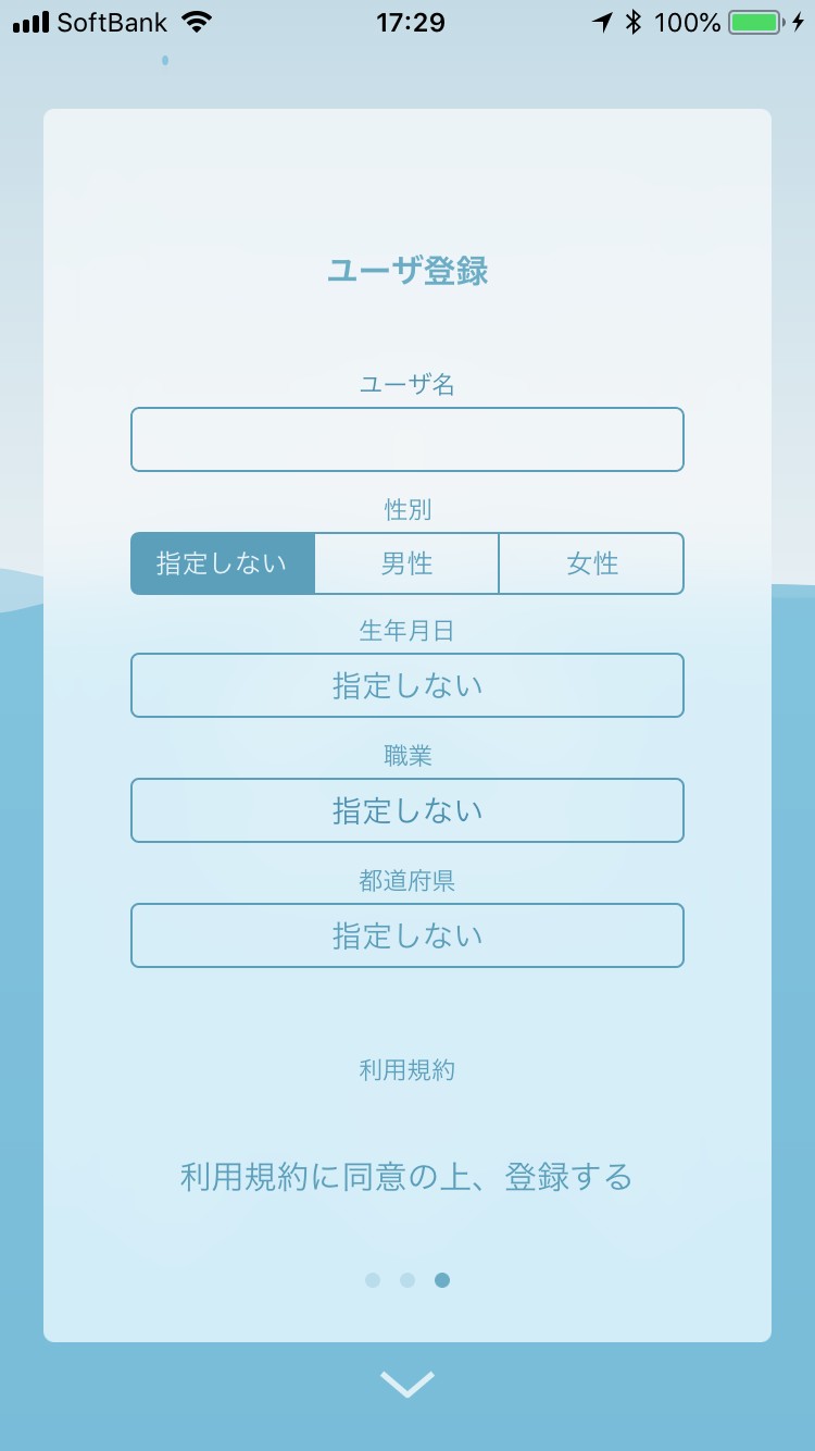 最後にユーザ登録画面が表示されます。ここはユーザ名以外は特に指定する必要はありませんので、お好みに応じてそれぞれ入力、選択して「利用規約に同意の上、登録する」という文字をタッチしてください。これでインストールと初期設定は終了です。