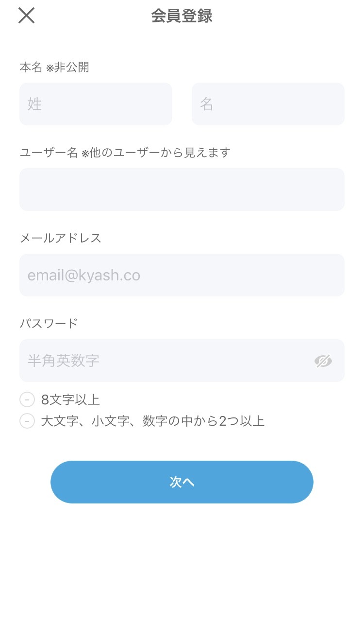 Kyashの登録方法はFacebookとメールアドレスでの登録の2種類あります。
