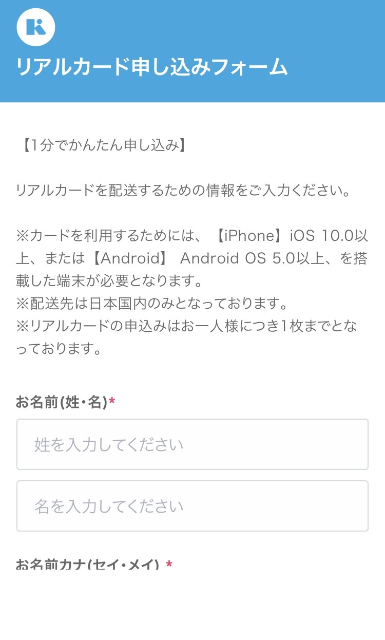 2018年6月7日からリアルカード発行の申し込み受付が開始されました。これまでと違い、実店舗でも楽に使えるようになりました。詳細は後の項目で紹介します。