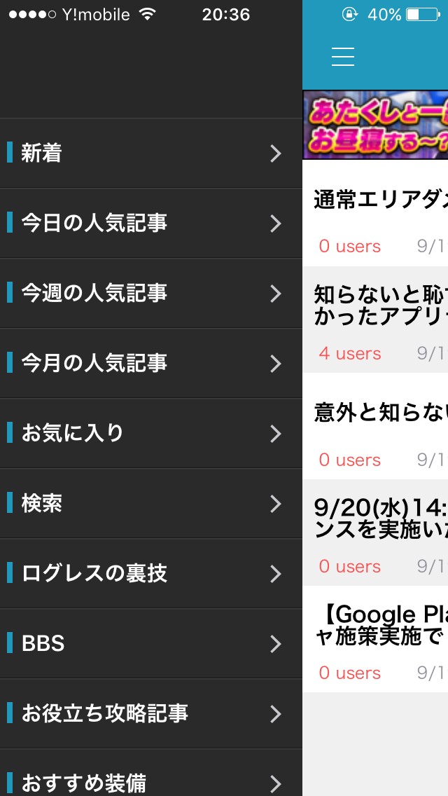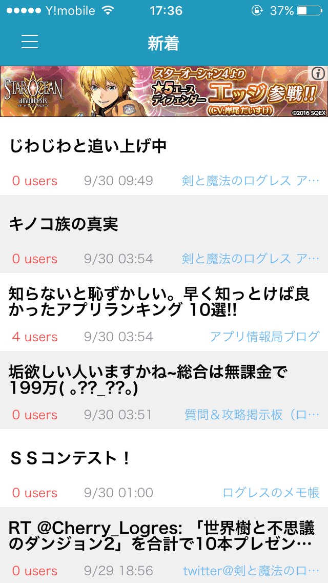 ・新着記事は「剣と魔法のログレス」のデイリークエストや、アップデートされた内容の情報など様々
