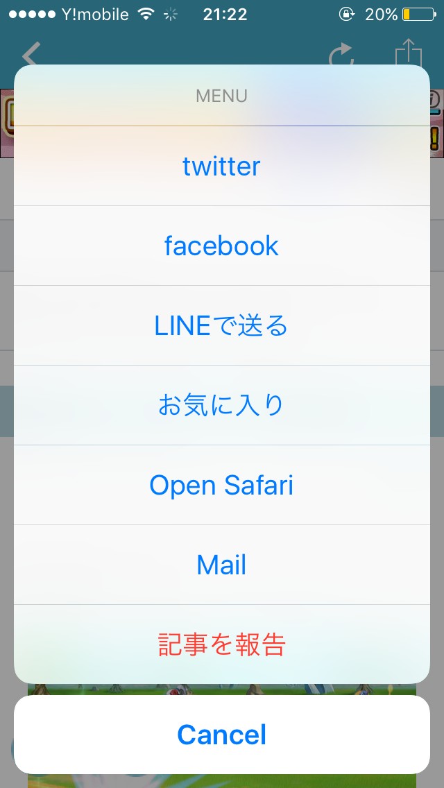 まず、「お気に入り」に登録したい記事の画面が表示されたら、アプリ右上の共有ボタンを押します。