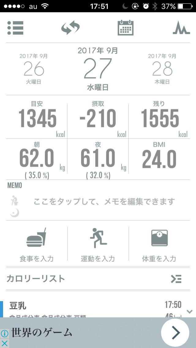 体重、カロリー、運動量管理をサポートしてくれるカレンダーアプリです。