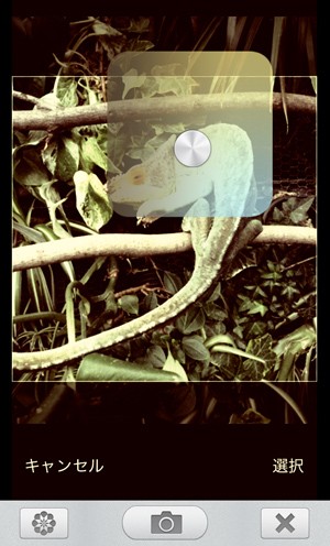 まずカメラアイコンをタッチして写真を撮影するか、その隣のアルバムボタンからアルバム内の写真を選択しましょう。