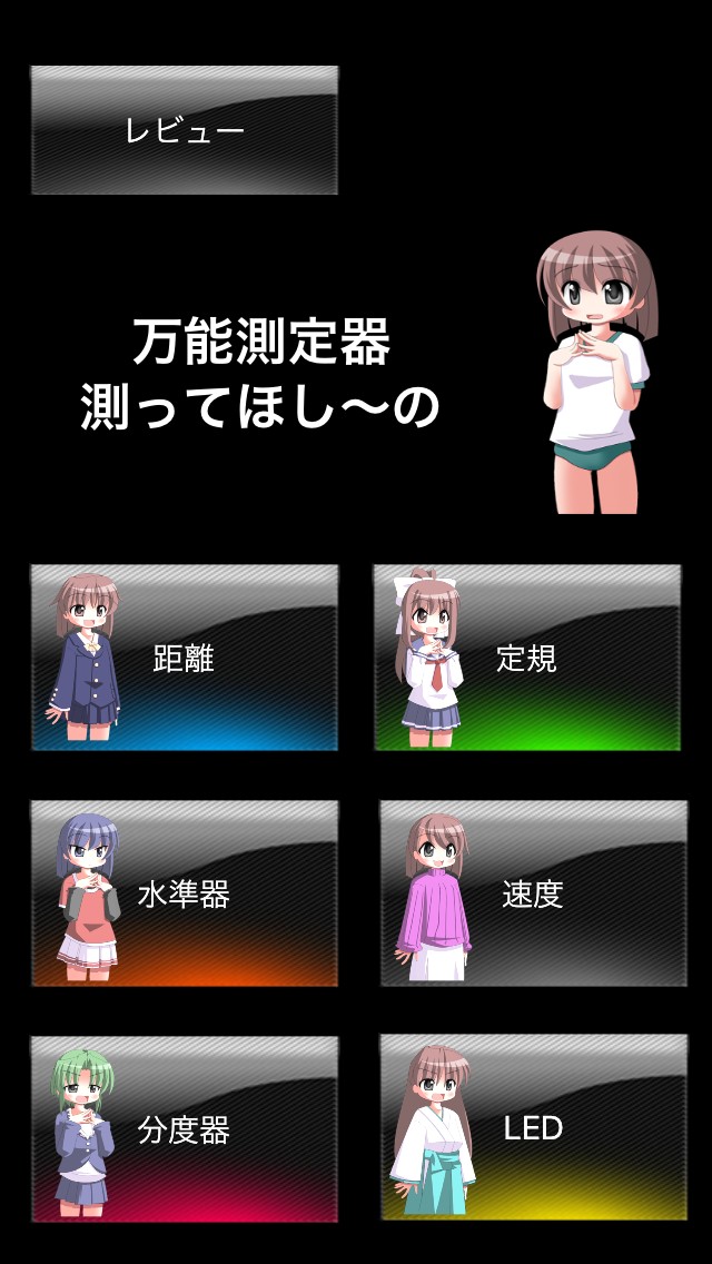定規、水準器、速度、距離、他に分度器とLEDライトなど、