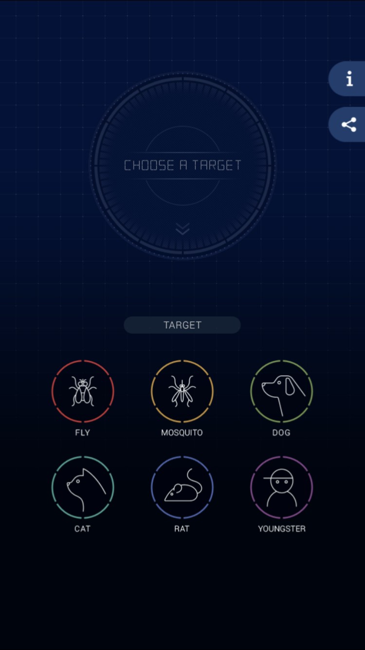 アプリ画面には遠ざけたい虫や動物などのアイコンが表示されており、