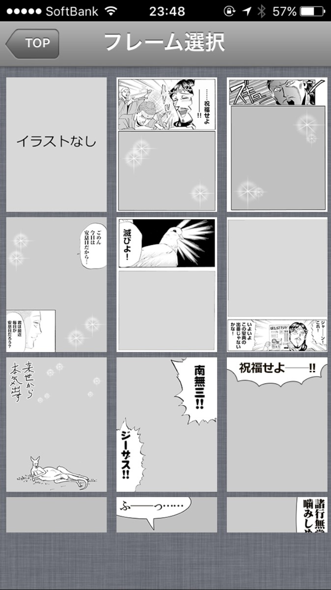 漫画に出てくる名台詞などもフレームで登場しますので、アニメ好きの方なら楽しめるでしょう。