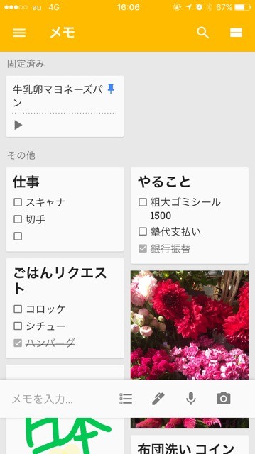 日頃から、思いついたアイデアをスマートフォンで「Google Keep」にメモ。
