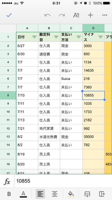 家計簿や売上管理表をつけるのにとても便利で、例えば、電車の中でスマートフォンからGoogleスプレッドシートアプリを起動し、数分で入力。