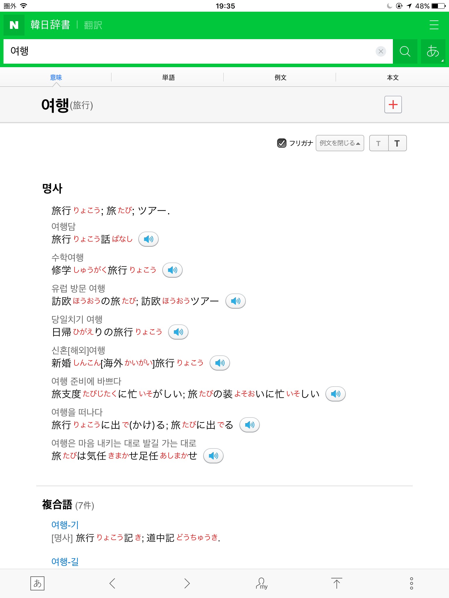 複数の辞書で効率よく韓国語を調べたい、文例を知りたい時に役立つアプリです。