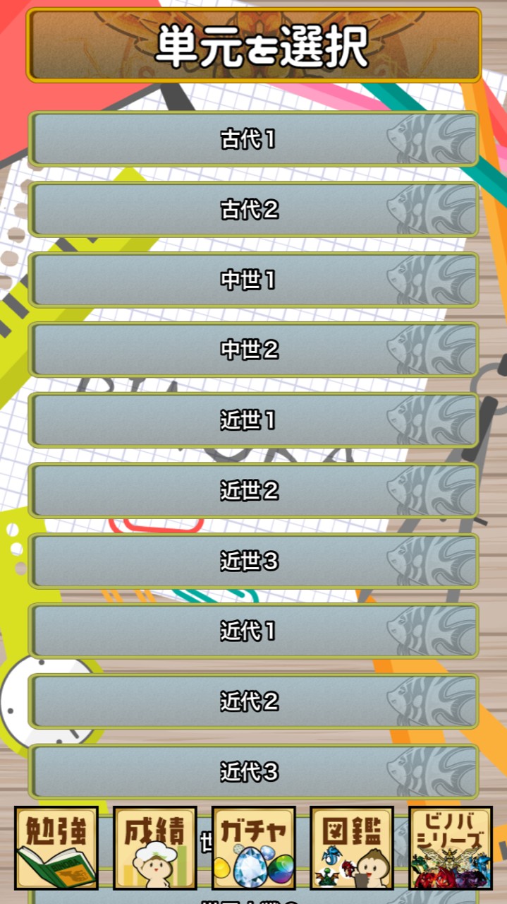 学習したい単元を選び、クイズ感覚で勉強することができるので、歴史が苦手なお子様の学習にも役立ちます。