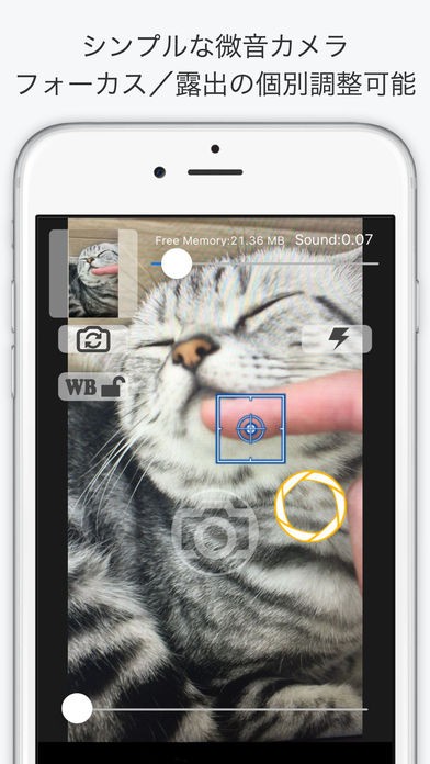 動物の声、楽器、電車、チャイムなど数10種類ものシャッター音があり、無音にもできる便利なカメラアプリです。