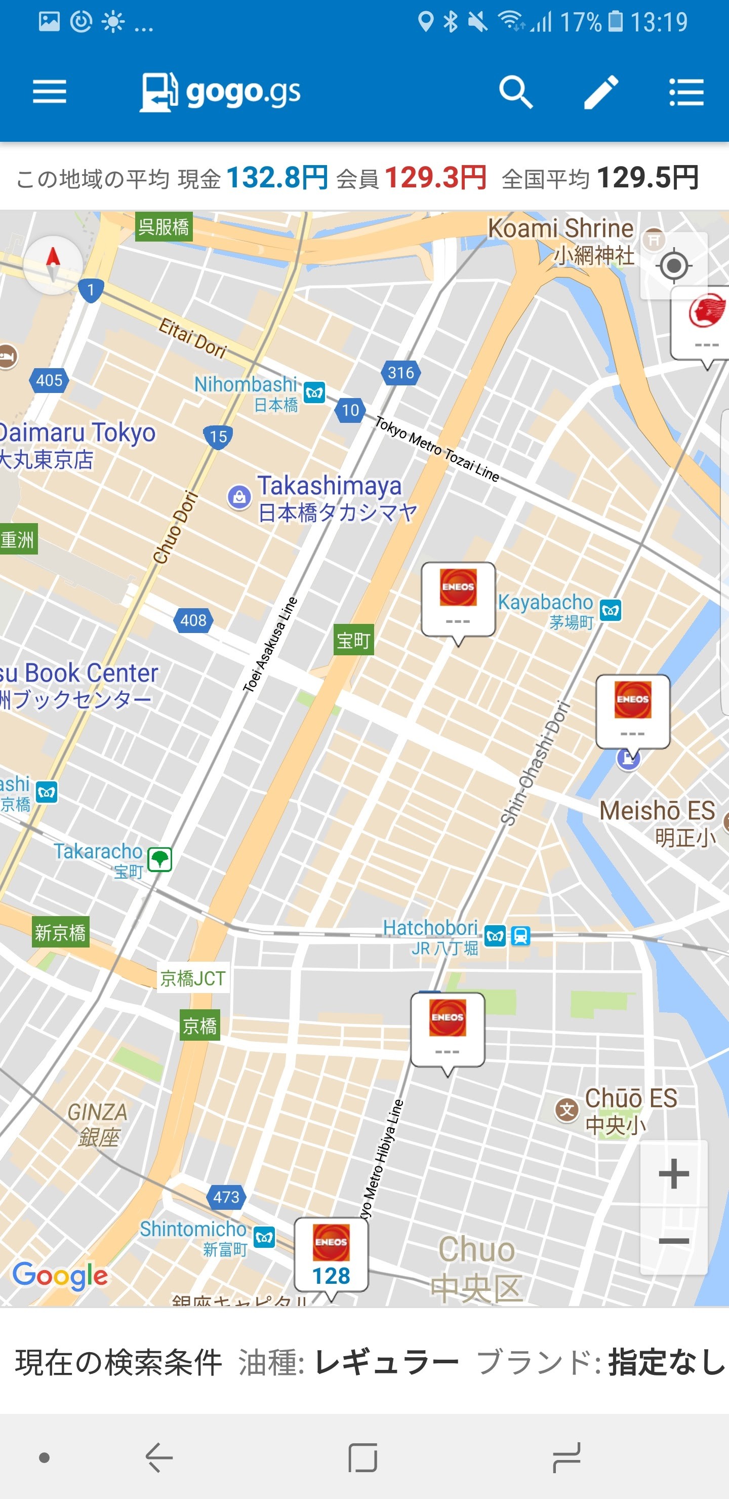 「ガソリン価格比較アプリ gogo.gs」は現在地に近いガソリンスタンドを一覧で見ることができる他、そのガソリンスタンドの販売価格も分かる素晴らしいアプリです。