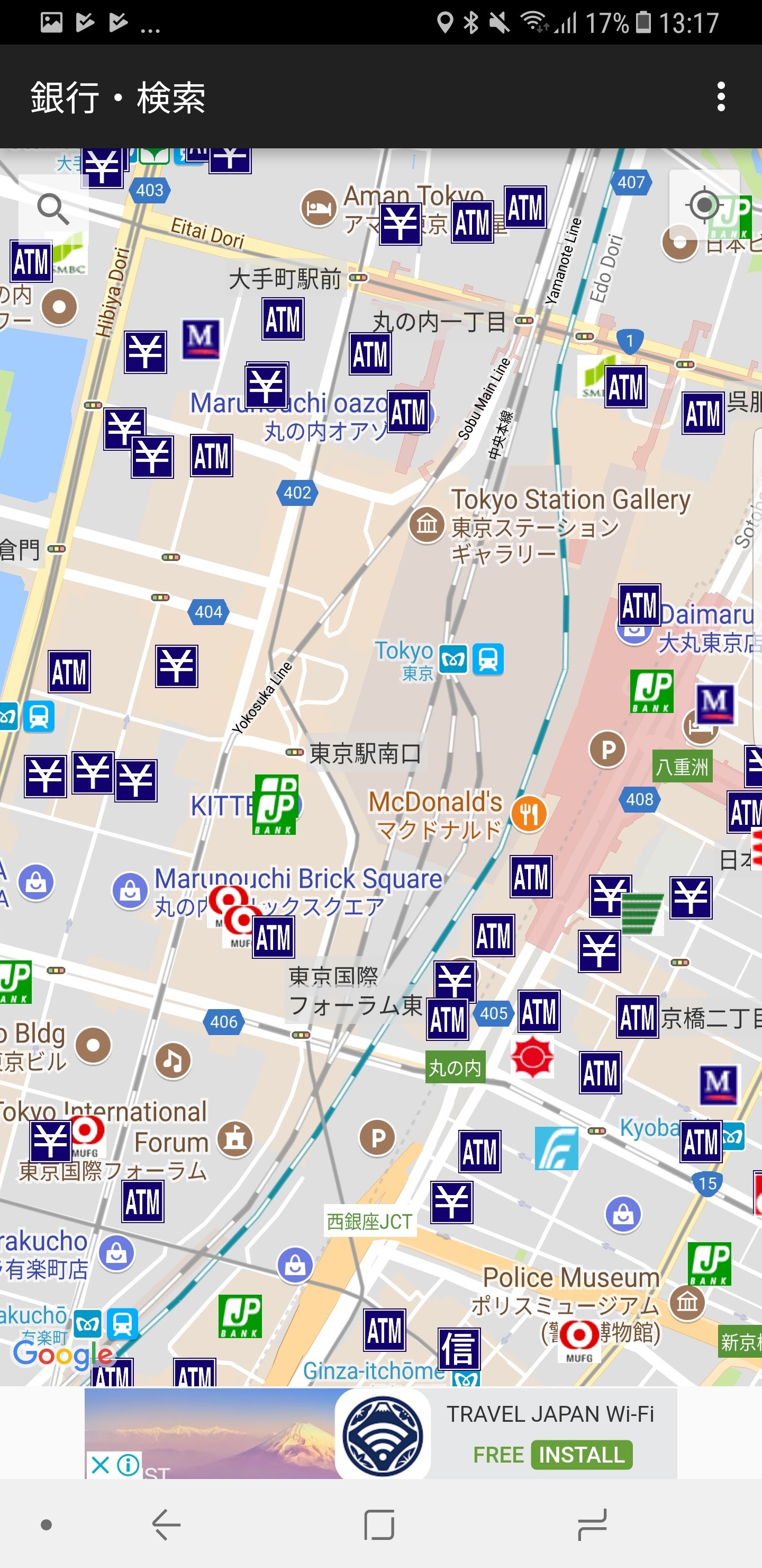GPSを使用して現在地から最も近いATMの場所などもひと目で分かるようになっていますので直感的に使え、オススメです。