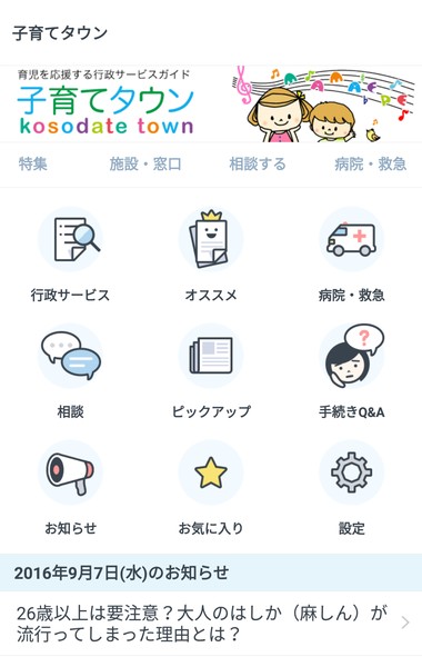子育てに欠かせない様々な地域情報をチェックすることができる便利なアプリです。
