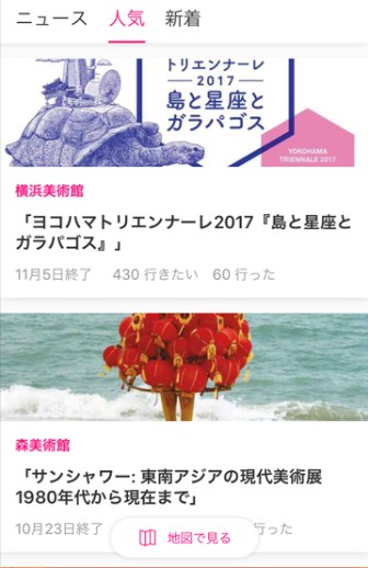 東京のエリア・アートジャンル別に絞り込んで検索可能なアプリです。