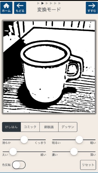 消しゴムはんこ、版画のほうに画像を加工できるアプリです。