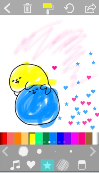 ハート・星などのスタンプがあり、色塗りが難しい年齢のこどもでも楽しめます。