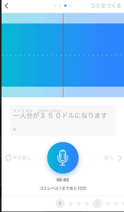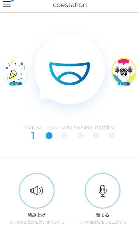 「コエ」は、指定文章をたくさん読めば読むほど、よりユーザーの声に近いものになっていきます。声のレベルは5段階あり、育成感覚で自分の声に近づけていくという楽しみ方ができます。