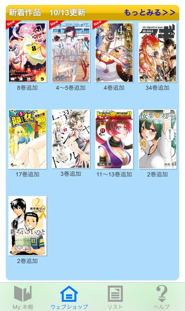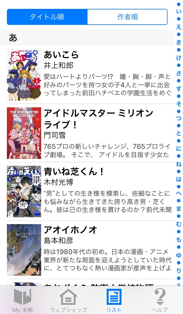 単行本の表紙が表示さらているので、少し読んだことがあるけど名前が分からないといった時も探しやすくなっています。