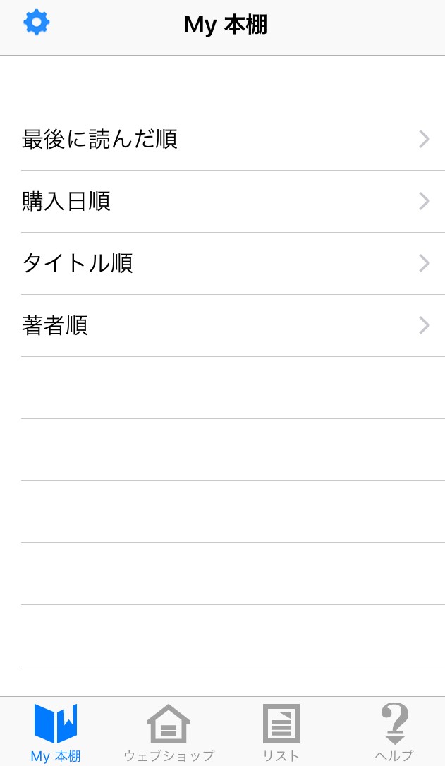 最後に読んだ順・購入日順・タイトル順・著者順があります。