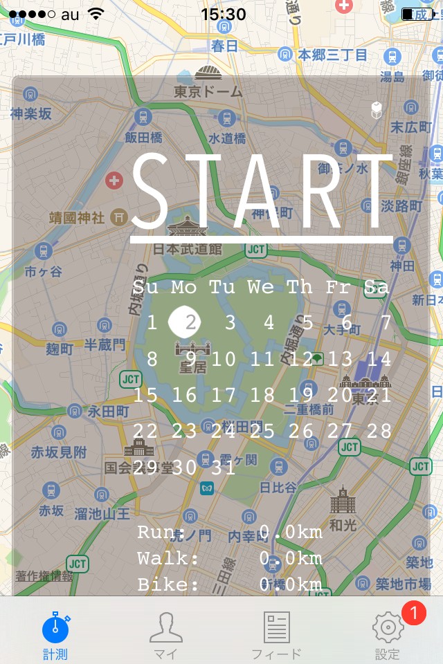 いきなり長距離を走るのが不安な人は、簡単に距離を測れるアプリ「キョリ測」を使って、自分のペースに合わせた走りを行いましょう。目的地をタップしていくだけで、出発地点からの距離と消費カロリーを計算することができます。目標とする距離を決めて走る際の、ルート作成に利用してみてください。