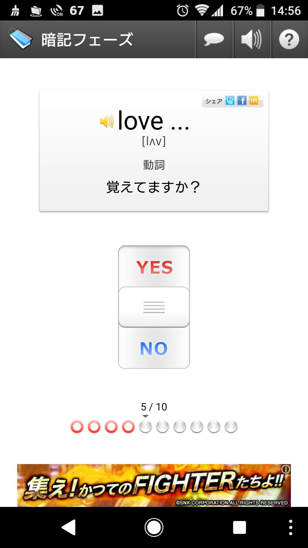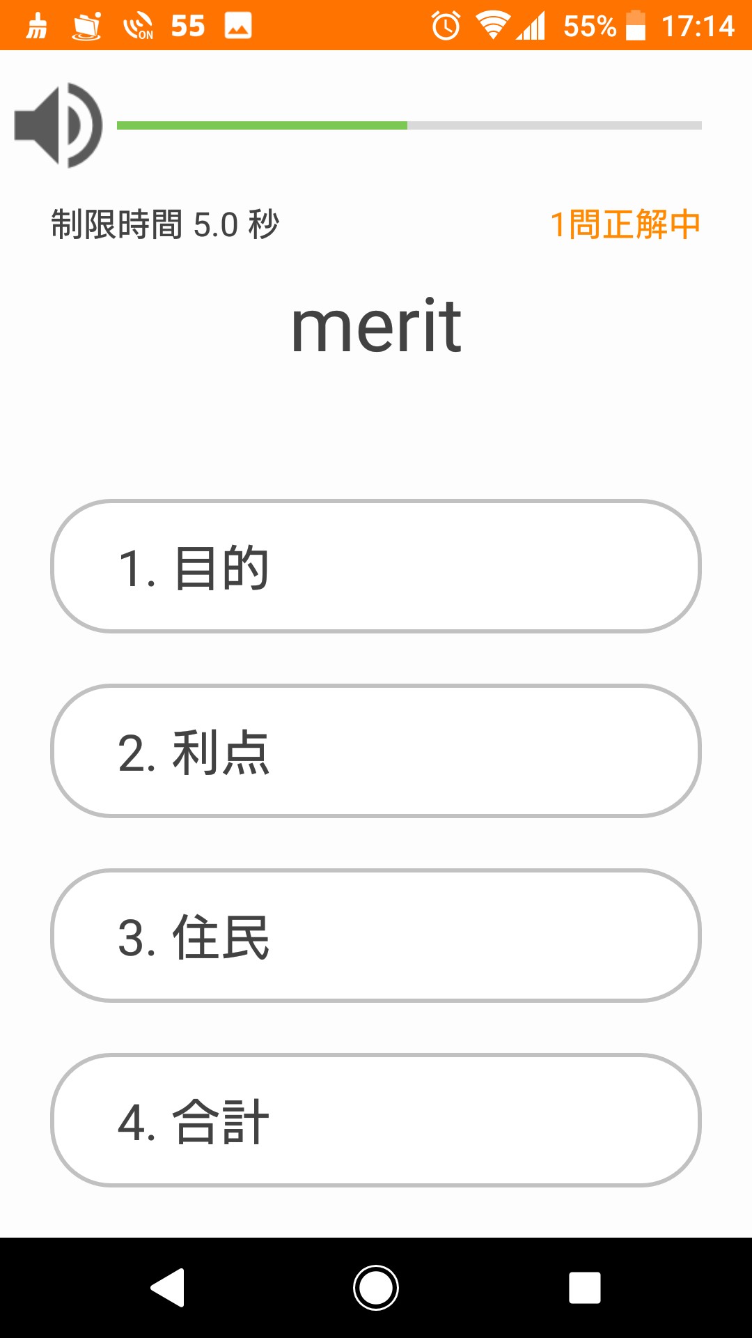 10個の単語すべての確認が終わると「習熟フェーズ」に移行します。制限時間内に、4つの選択肢から正しいものを選んでタップしましょう。全問正解できると習熟フェーズ終了で、これで「学習セッション」を1単位終了したことになります。
