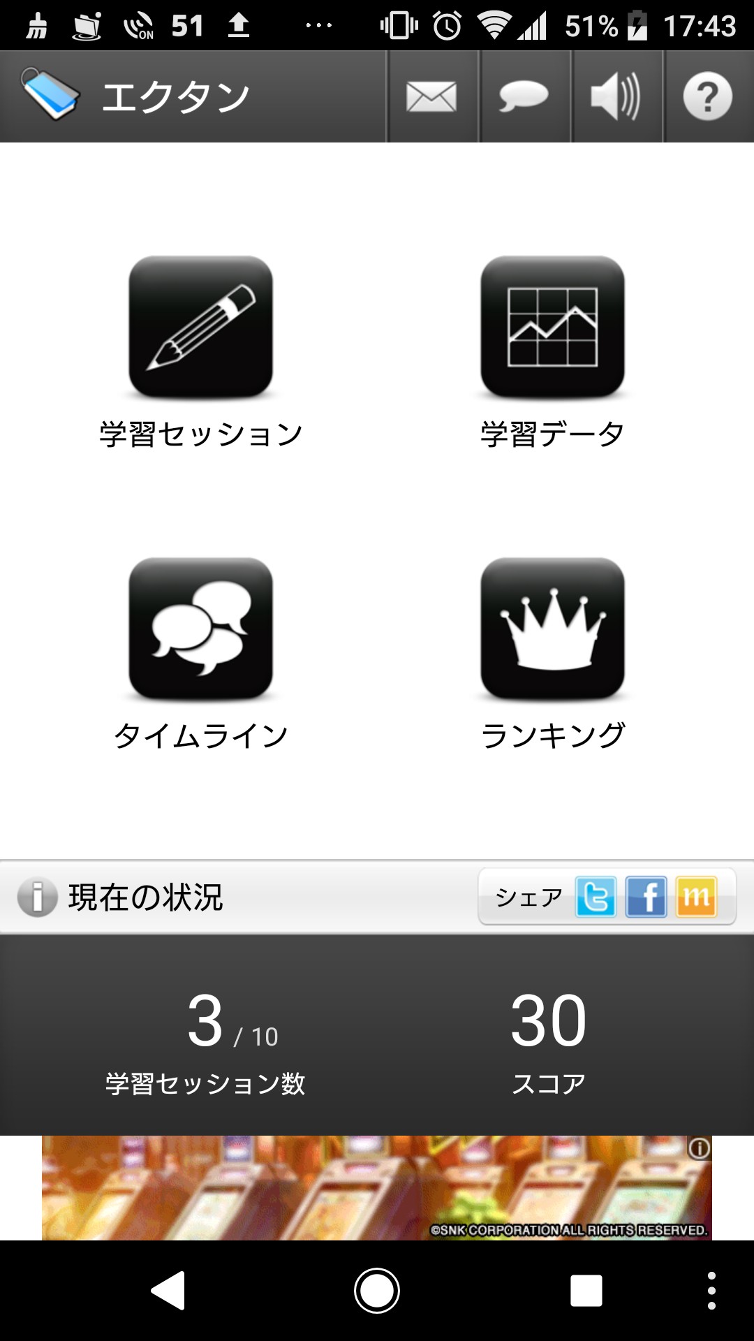 「エクタン ~エクストリーム英単語~」は、英単語の反復学習に特化した、無料のandroid専用学習アプリです。ただだらだらと単語が出題されるのではなく、さまざまな機能や設定を盛り込むことにより、高校受験を控えた中学生から、TOEICで高得点を目指す人、英語力のブラッシュアップを目指すビジネスマンまで、ユーザーのレベルを問わず最大限に有効活用することができます。