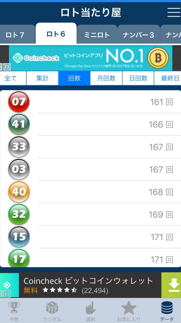 ロト6やミニロト、ナンバーズ3および4の当選番号を手軽に予想することができる「ロト当たり屋」。自分で番号を選ぶとき、何にしようか迷ってしまう人や、データに基づいた数字予想をしたい人にもおすすめです。選び方は3通り。スロットマシンのように動く番号を好きなタイミングでストップさせて数字をランダムに表示させる方法と、好きな数字をピッカーで保存し、その中から選ぶ方法。さらに、人気なのは過去の全データを元に集計して、当選確率の高い数字を予想する方法です。予想した番号はアプリ内に保存されるので、後で見返して参考にすることも可能。随時更新される最新の当選番号が通知されるので、結果を簡単に確認することもできます。