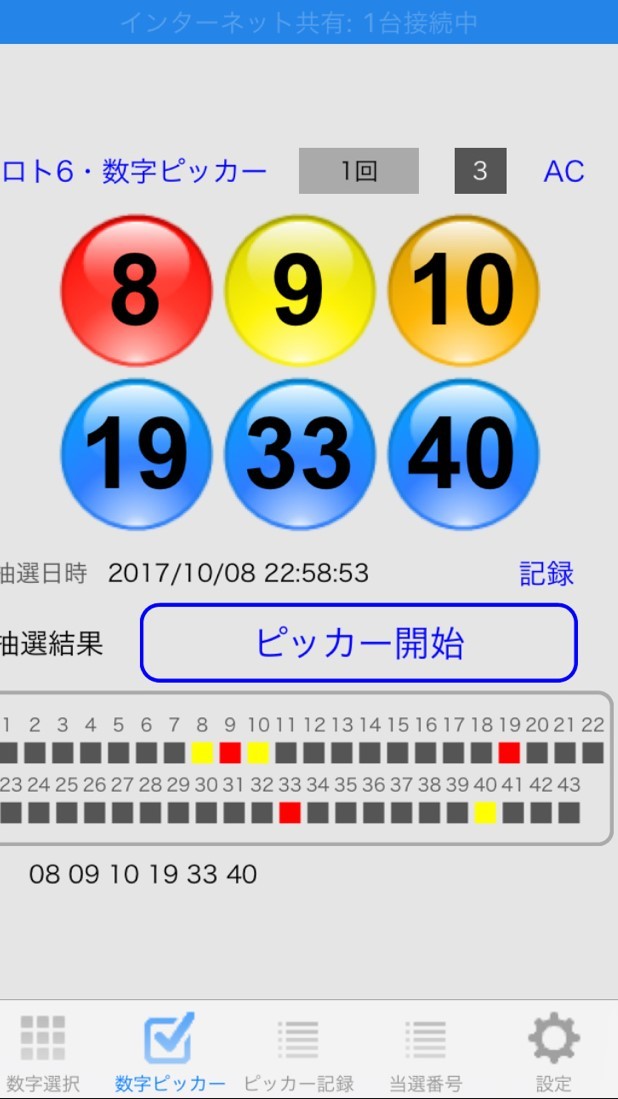 「Loto6P」はロト6を予想する際の1から43までの数字をランダムに選択してくれるアプリです。数字の選択に迷って予想に時間がかかってしまう人や、ロトのくじ売り場でよくクイックピッカーを利用する人などにおすすめ。選択した数字の中から、自分のラッキーナンバーや記念日など必ず使いたい固定の数字を設定することができるので、決めている数字以外はなんでもいいという人にも向いています。当選金額、口数、キャリーオーバーの金額などの当選データが一つの画面に分かりやすく表示されたり、記入しやすいようマークシートの記入イメージが表示されたりと、画面が見やすい点も魅力。選んだ数字はアプリ内に記録され、実際の当選番号と比べて的中結果を確認することもできます。