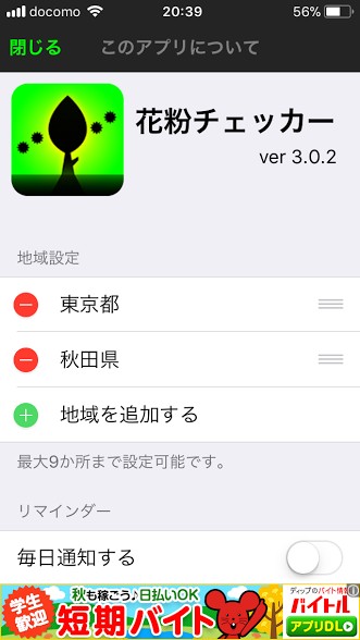 「花粉チェッカー」は、使いやすいので、ぜひ使ってみてほしいアプリです。