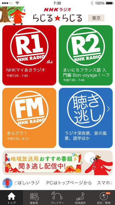 radiko.jpは、無料で居住区内のラジオがスマホやパソコンで聴けるラジオ配信アプリです。最大2週間分の番組表の表示やオフタイマー機能があり、バックグラウンド機能を使えばラジオを聴きながらスマホで別作業ができます。居住区以外の放送局ラジオを聴きたい場合は、月額350円(税別)のプレミアム会員の登録が必須。会員になると、全プロ野球試合中継や地方放送、旅行先などでも好きなときに聴くことが可能です。