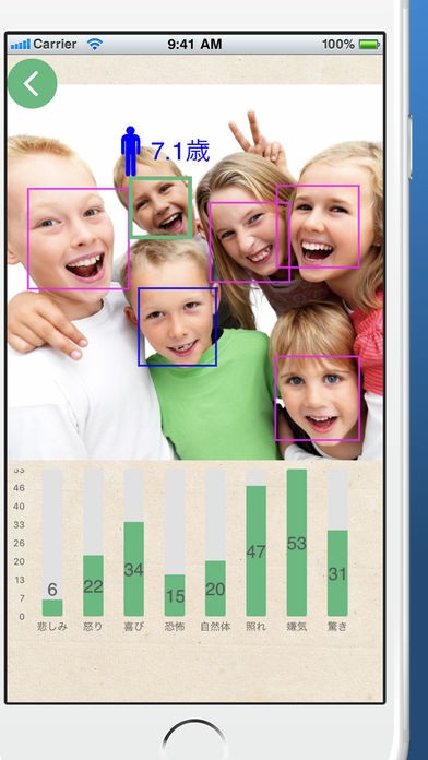 外の美しさは内面から出てくると聞いたことがありませんか?今回紹介する「顔診断」では年齢だけでなく、自分の感情をグラフで分析してくれるアプリです。項目は、悲しみや自然体など8つ用意されていて、どういった心理状態で撮影したのかその場で診断してくれます。とても楽しそうに写っていても、実は心の底に悲しみを抱えている人がいるのかも?とはいえ、遊び用の分析なので信憑性はありません。飲み会や食事会など、少し空気を変えたいなというときに試してみてください。