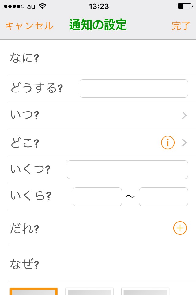 なにを・どうする・いつ・どこ・誰が・なぜ・いくつ・いくらの5W3Hで予定を記録できる便利なリマインダー!予定の詳細をチェックしたいときのメモ代わりにもなります。登録する予定にはイメージ写真の添付も可能!一覧で見たときにどんな予定なのかがすぐにわかるでしょう。アラーム音も数種類あるため、自分の好みに合うものを選べます。