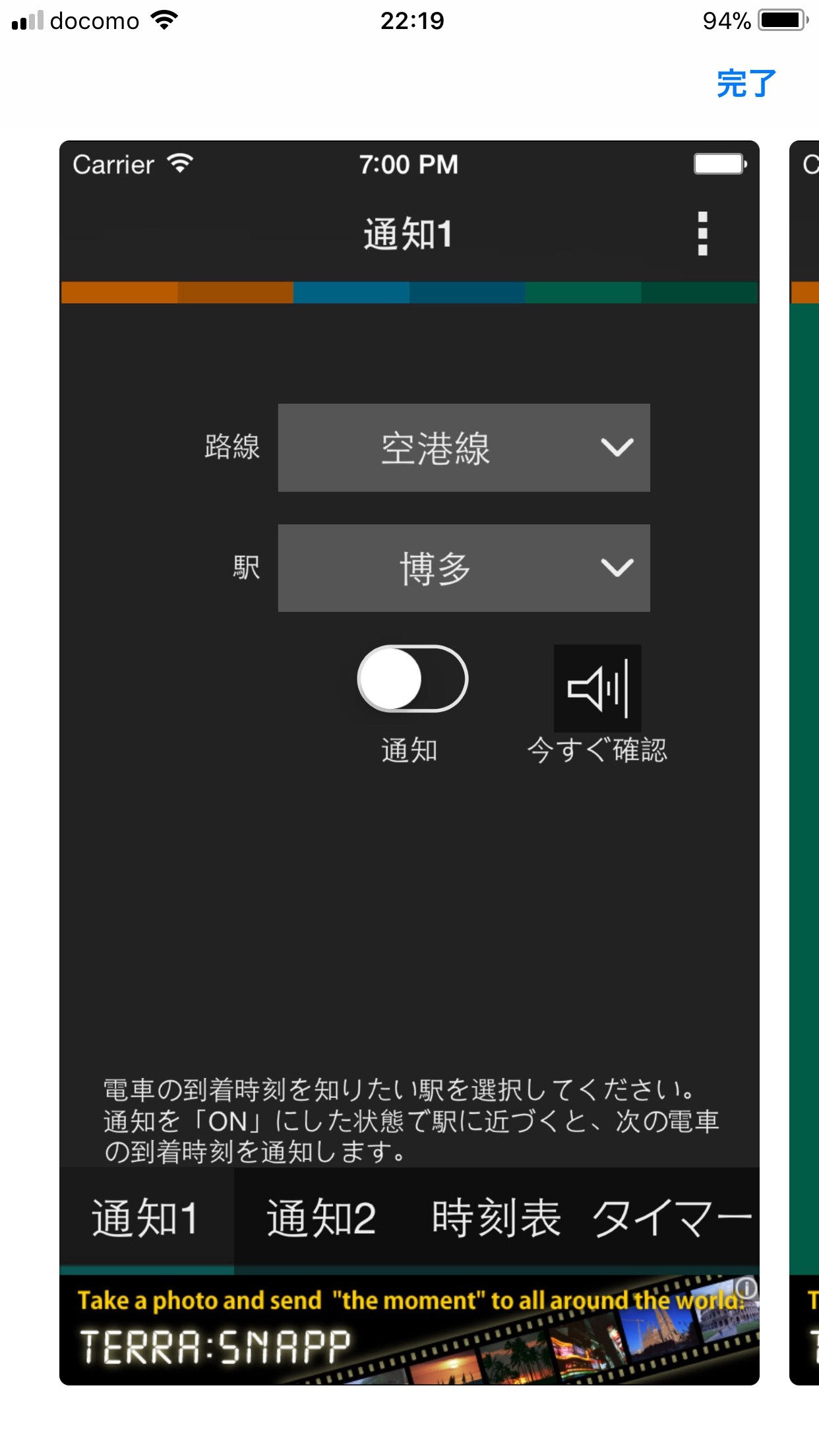 「電車くるよっ! 福岡市地下鉄版」は通知時間を自分のお好みに設定可能です