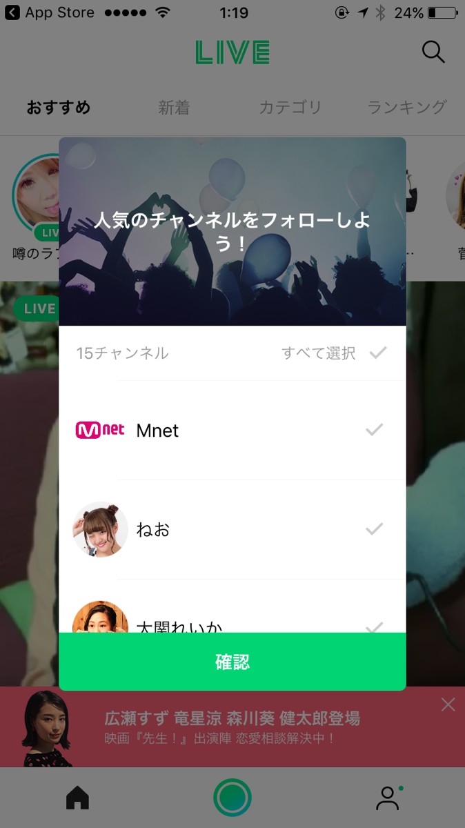 「MixChannel」は、無料で動画配信・視聴のどちらも楽しめるアプリです。注目は女性に人気の美肌フィルター機能です。フィルター機能を利用すれば、普段よりもキレイな姿で動画配信が行えます。またBGMも、iTunesで購入した音源であれば自由に設定できるので、オシャレな音楽を流しながら楽しい動画配信ができるでしょう。
