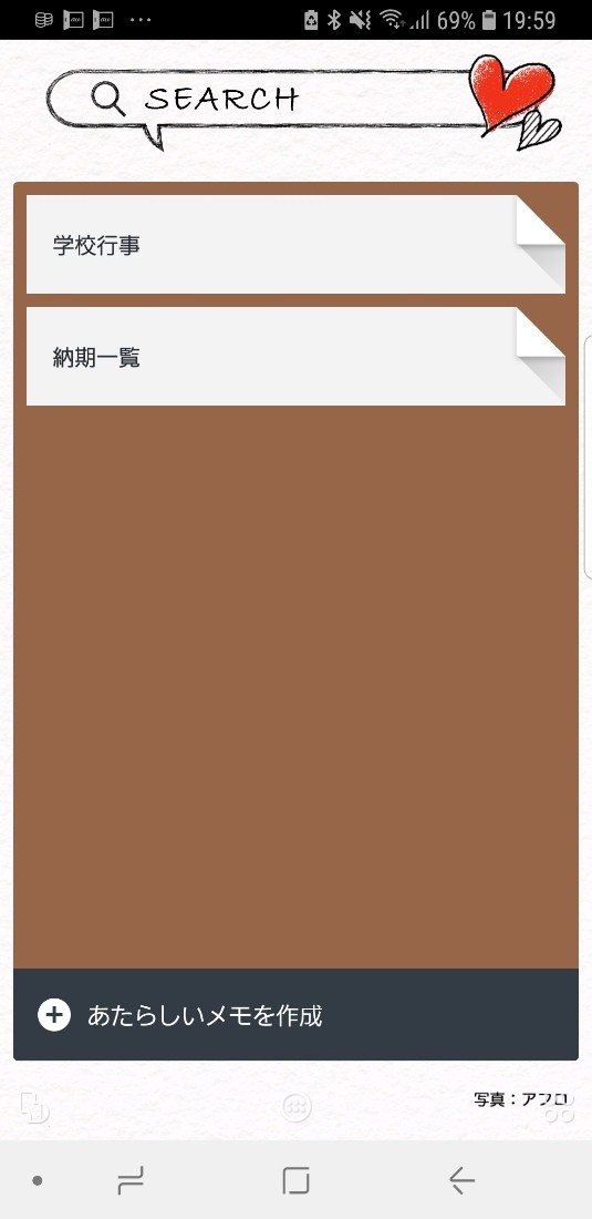 このアプリはシンプルで使いやすいのに、背景を変更できたり、付箋の種類も多いのでデザイン性に優れているのがおすすめポイントです。普段使いでも、実際にメモを貼り付けているように見えるかわいい付箋アプリです。