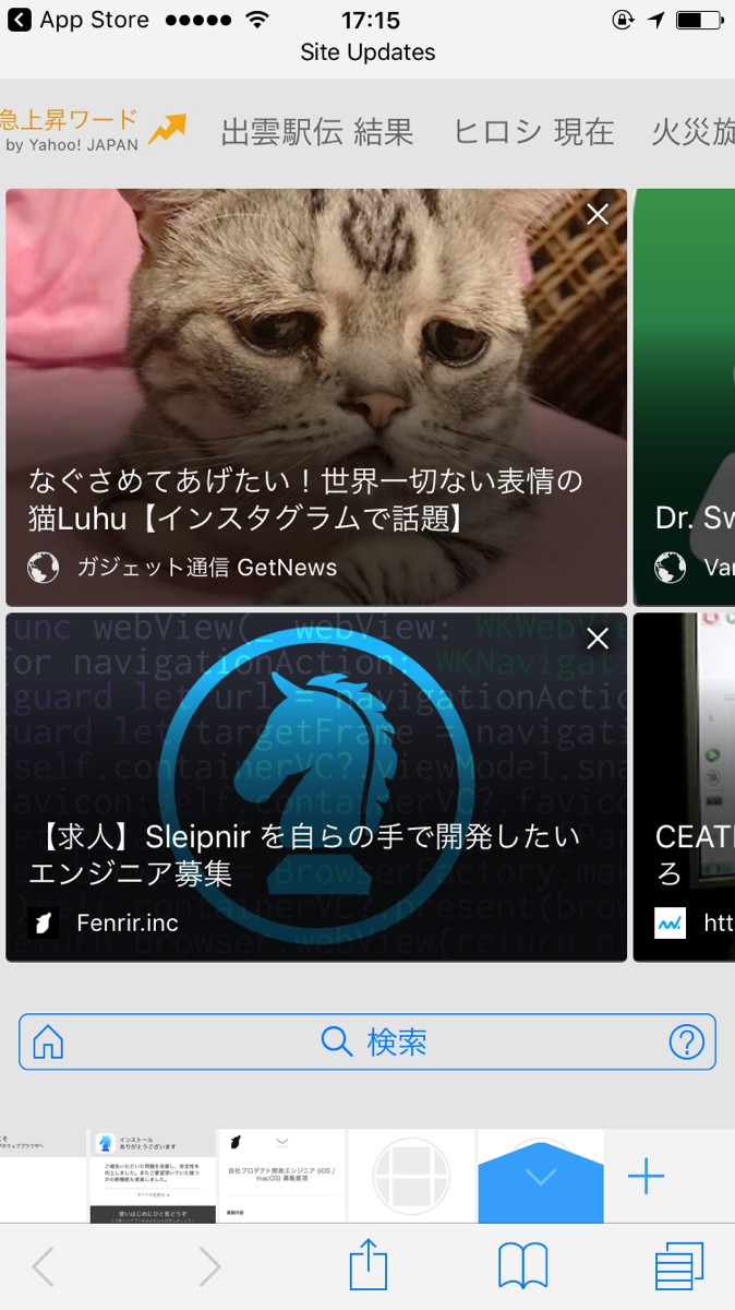 「Sleipnir Mobile」はすぐにページを切り替えたり閉じたりが可能な、ユニークなサムネイルタブが備わっています。いつも触れることができるディスプレイの下部にタブが配置されているので、ブラウザを中断する必要がなく多くのページを自由に行き来することが可能です。タブを閉じたり、更新、復元などがジェスチャで可能なので、素早く操作ができます。Facebook・TwitterなどのSNSにも連携しているので、SNSを利用している人にも使いやすいアプリです。