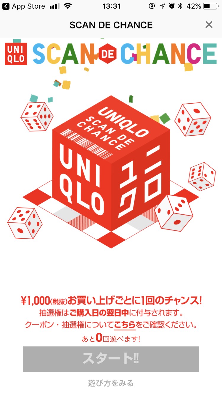 ユニクロでは会員証を購入時提示してもポイントがつかないのですが、そのためアプリの会員IDの提示をしていないという方もいるのではないでしょうか。ユニクロでは、ポイントの代わりに「SCAN DE CHANCE」というコンテンツでくじのような抽選を行えますので、ぜひ会計の際に提示してみましょう。