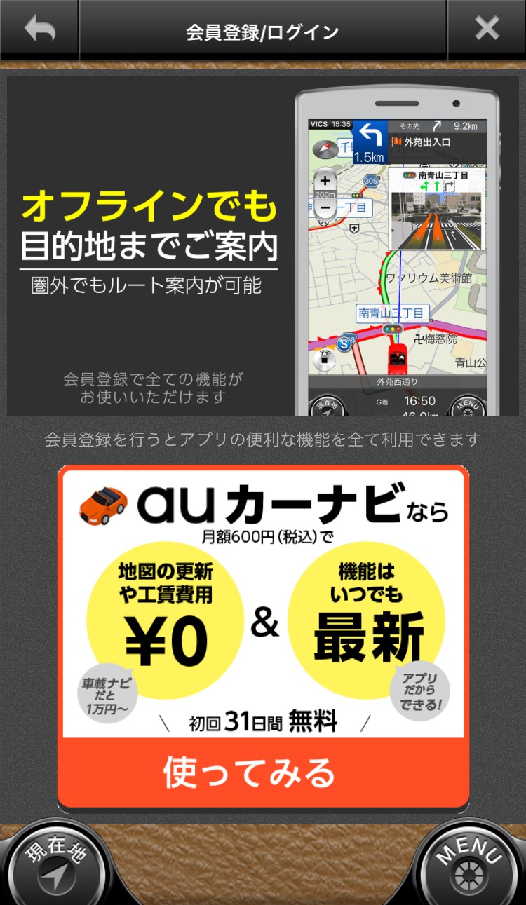 本格的なカーナビゲーションアプリ「auカーナビ」