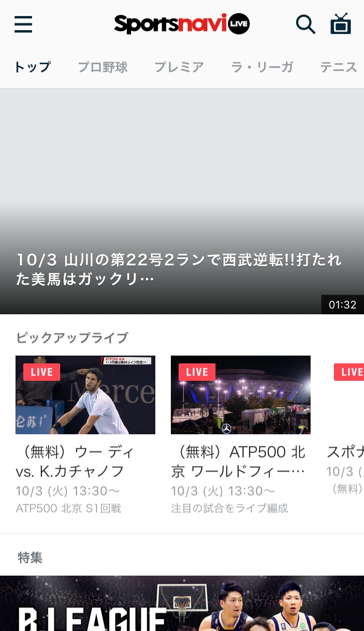 人気スポーツをいつでも楽しめる「スポナビライブ」