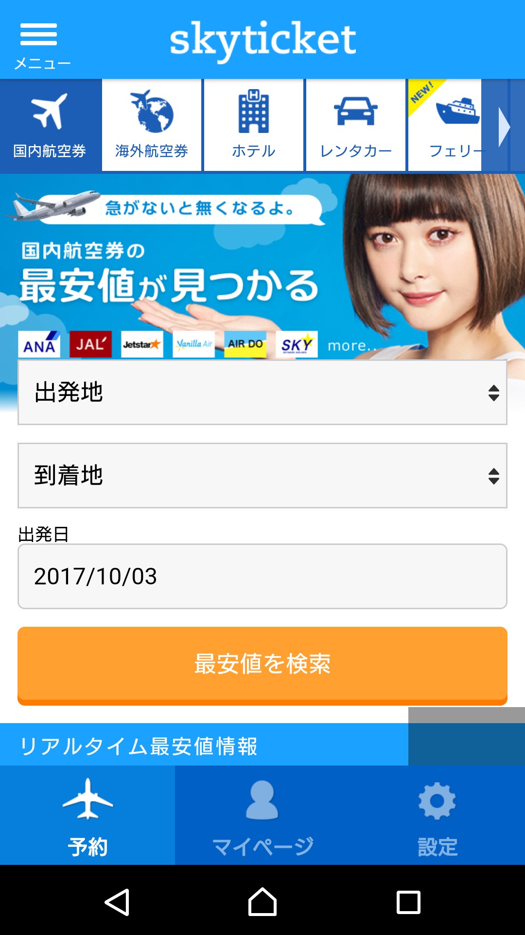 格安航空券 skyticketは、様々な航空会社の航空券の中から最安値を探してくれるアプリ。
